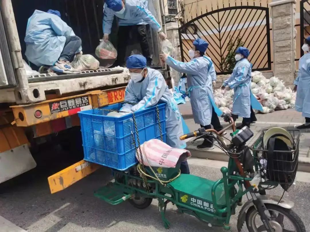 3月31日,上海市长宁区天山路邮政支局主动联系天山街道,共组织了4辆邮车、12部电瓶车、19名投递员参与天山街道的防疫保供物资配送工作,顺利运送、发放30吨的蔬菜礼包。