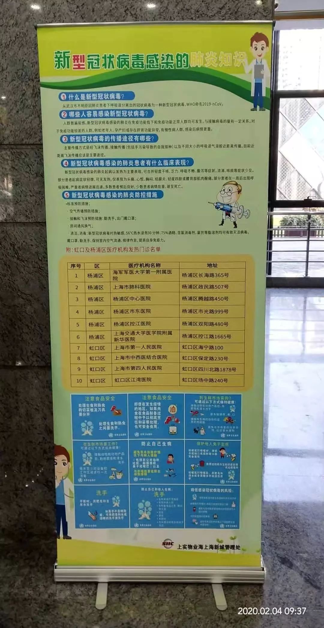 通过制作易拉宝、海报,以大堂电子屏、宣传栏的方式,进行宣传通告和疫情防控知识,通过循环播放疫情防控的相关内容,营造人人重视,人人防控的氛围。