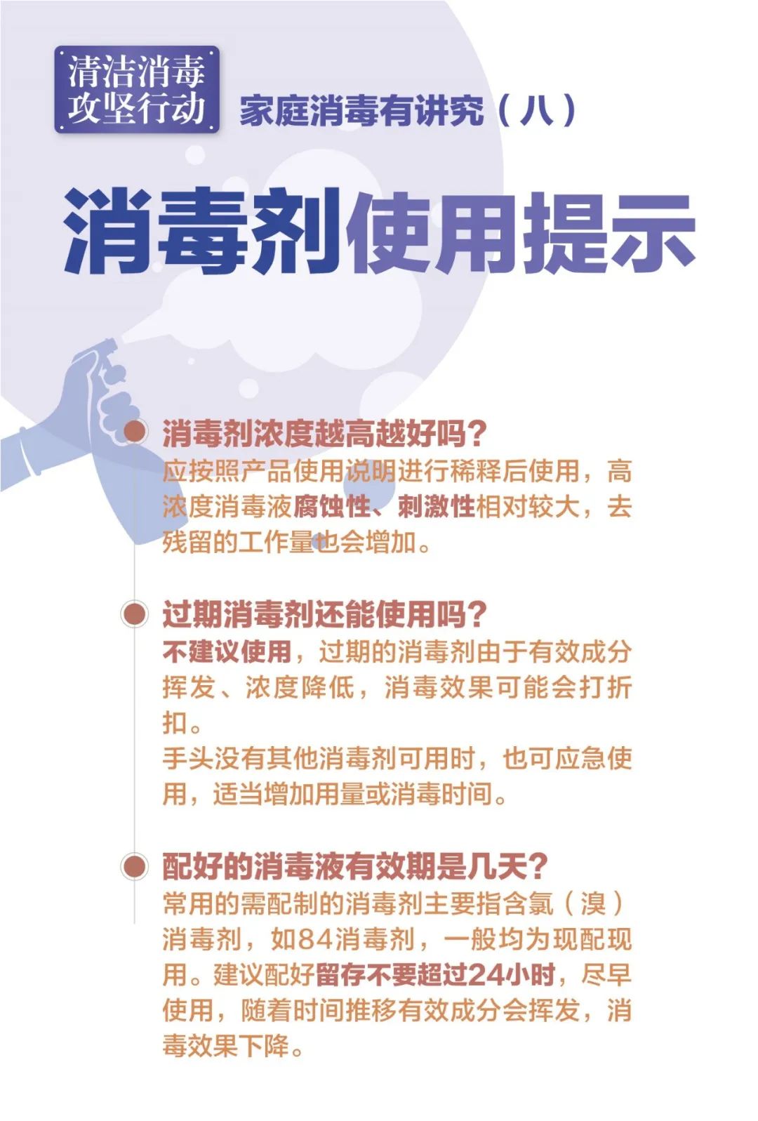近期,市环境整治消杀工作专班、市爱卫办会同市疾控中心、市健康促进中心开发了一整套共十张家庭清洁消毒的宣传海报,涵盖消毒原则、消毒要素及消毒方法等一系列要点,从具体消毒剂的使用到各类物品消毒,帮助广大市民主动掌握规范、专业的家庭清洁、消毒方法。详见↓