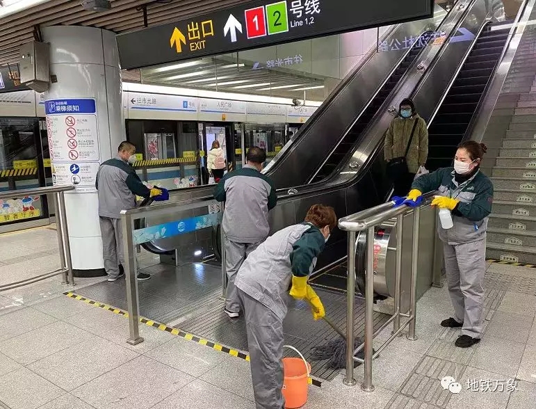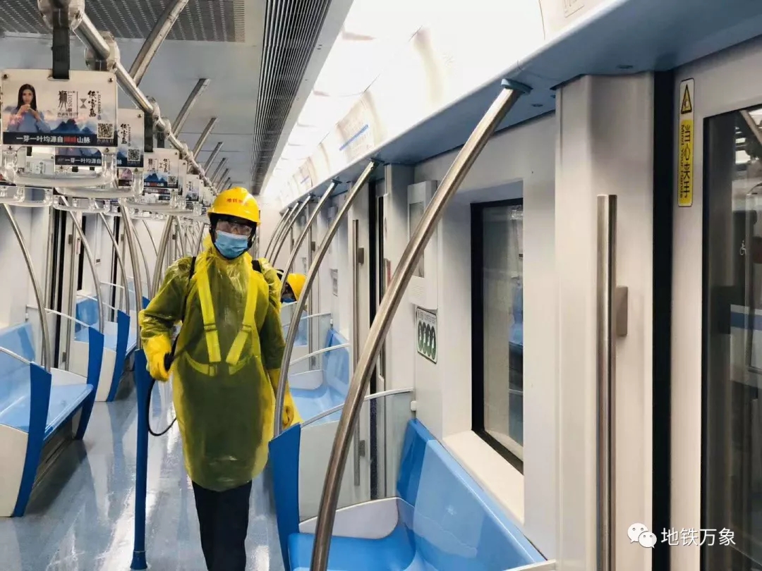 邻近医院、交通枢纽、旅游景点等车站及换乘站卫生消毒每日不少于4次,间隔不超过4小时。全网449座公厕、792台安检设备按照1次/小时频次定时清洁消毒。