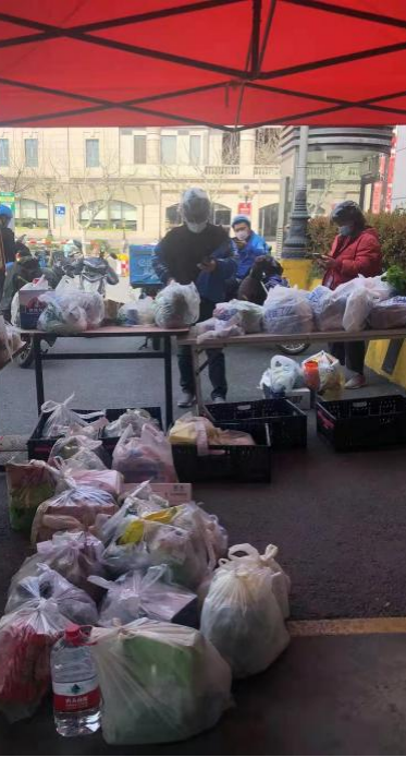 3月16日,大约3000余户居民实行14天闭环管理,北区行知店对接了供应必需品的工作,马上发布相关商品信息,每日下午三点截单,晚上配货,第二天一早将新鲜蔬菜送到隔离小区指定地点。西区长顺路店则另辟蹊径,在封闭小区周边设摊,更高效地为市民们提供服务,与封闭居民们携手渡过难关。农超集团旗下所有处在营业状态的店铺都时刻准备着为社区、为人民提供服务。