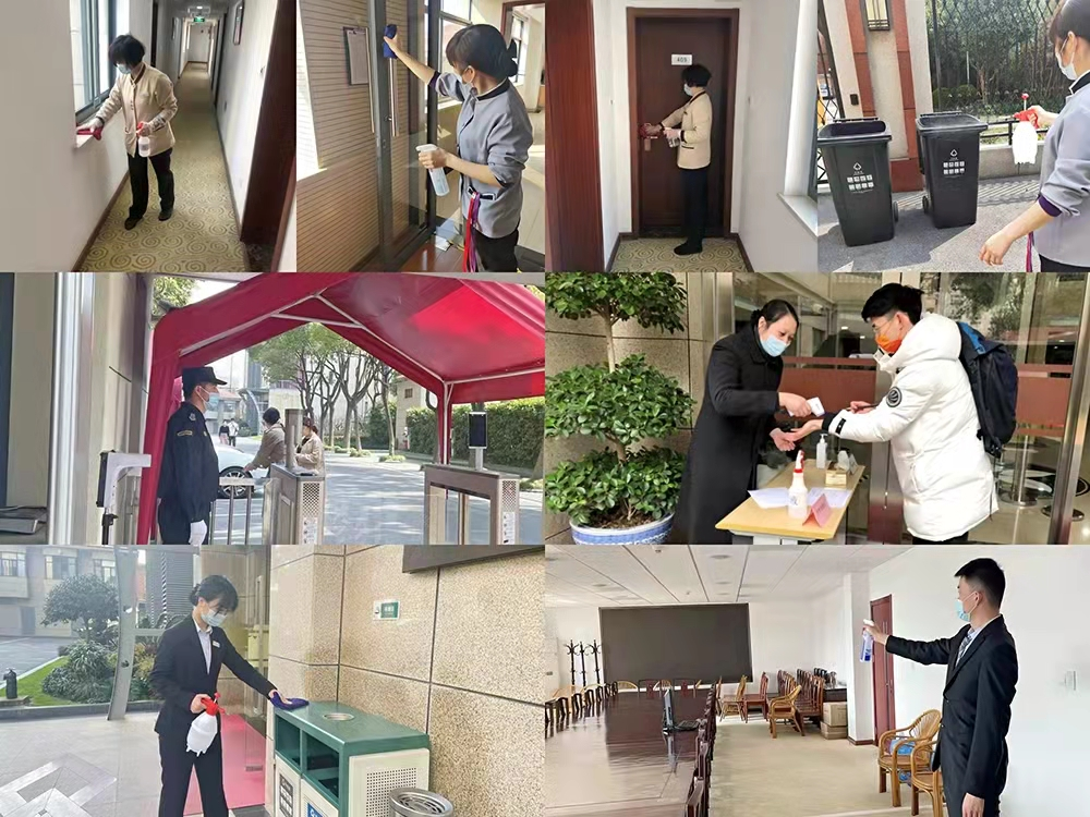 各部门、管理处坚持每周配合组织核酸检测,进行场地布置,维持现场秩序;落实员工健康管理和检测工作,严控外来人员进出,做好测温、车辆登记等备案工作;紧盯重点环节,制定完善的疫情应急预案和应急处理机制,做好突发事件的应对准备;保洁人员加强公共区域消毒频次、工程人员对空调箱、新风箱等每日消毒,对风机盘管每月全覆盖消毒,关闭空调AHU风机,有效防止病毒传播、会务人员严格执行会议室通风及消毒工作、快递须消毒后才进入安检及收件流程;必要时紧急增设临时休憩点供员工做好各项服务保障工作。