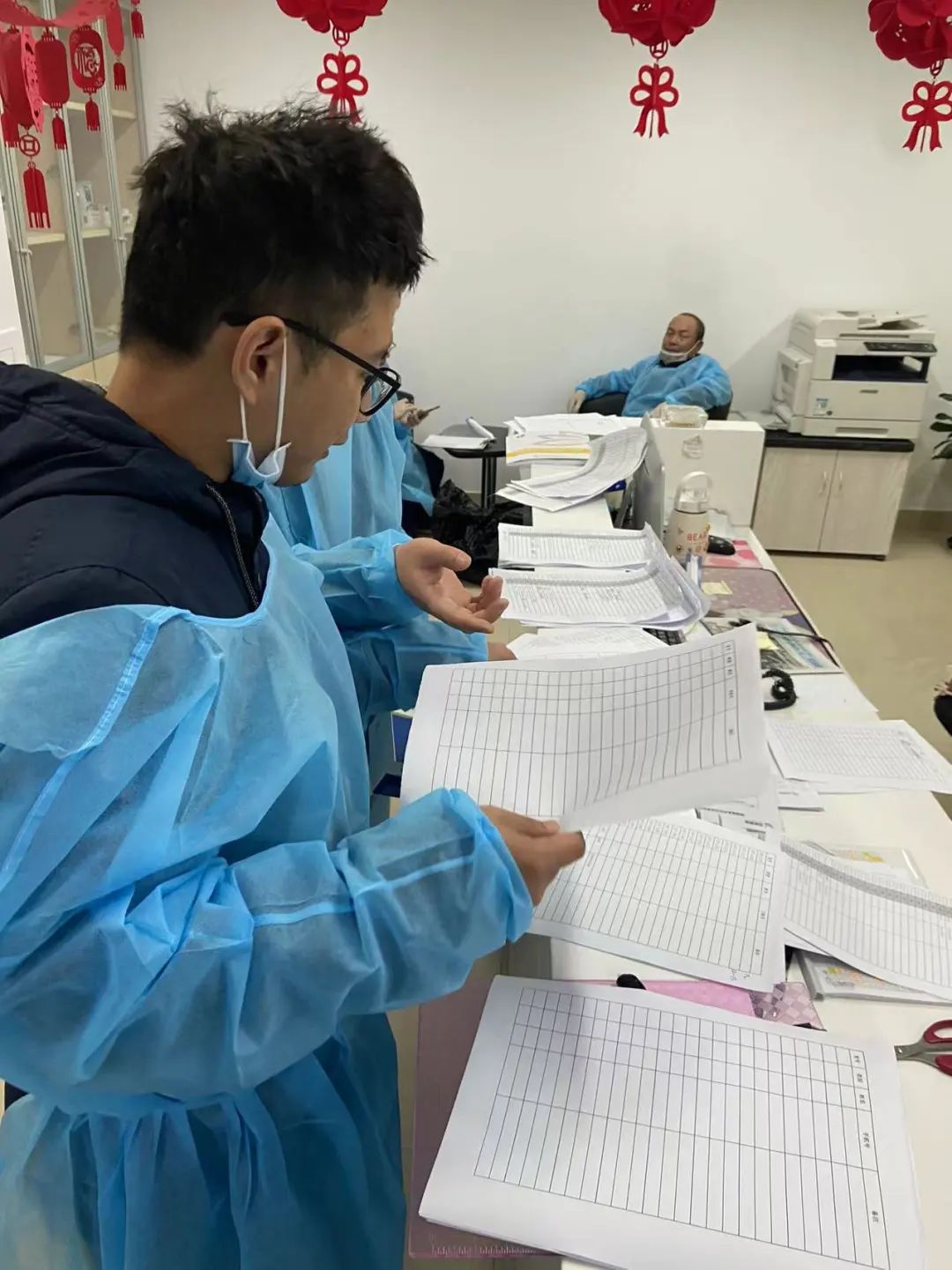 3月26日下午16:00,“特别行动队”再次被镇政府委以重任,抓紧本周末这个疫情防控关键窗口期,全权负责滨河居委会下辖小居民小区的抗原自检工作。接到命令后,12名“尖兵”迅速集结,经培训后披挂上阵、带上成箱的试剂盒踏上了走家串户的“征途”。23:30分,与最后一户住户挥手道别之时,1100多户居民均未出现一例阳性,此时,已经忘记了饿、忘记了渴的蒋捷他们终于舒了一口气。3月27日,自本月初疫情发生以来就没有回到过市区家中的蒋捷被封闭在了发现阳性病例的宿舍小区里。晚9点,上海发布发出通告,浦东即将全域封闭展开新一轮筛查, 早就与蒋捷有了默契的搭档黄俊杰在蒋捷的“遥控”调度下,立即带着伙伴们留宿在了办公室里,第二天一早5点在微露的晨曦中搭起了帐篷、检测台。又一轮核酸检测即将在今天完成,他们又一次紧张忙碌了起来,“每个人都竭尽所能做好自己能做的事情,这一场上海“战疫”就没有不胜利的道理”,如果有人问他们在想什么,这就是他们心中最朴实的答案。