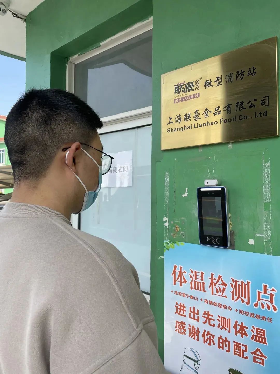 联豪食品坚持全面管控,无论是进车间前,还是车间后,工作人员必须全副武装、全面消毒。